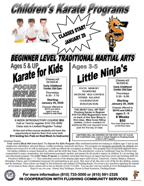 810-733-3000 Call or text, flushingkarate@gmail.com